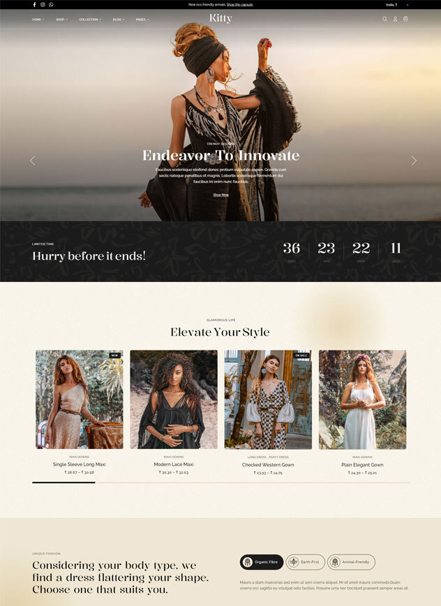 Kitty is suitable for the eCommerce websites such as fashion, accessories, sport, drone, cases, cosmetics, sneaker, equipment, furniture, organic, food, grocery, electronic, shoes, glasses, supermarket … or anything you want.